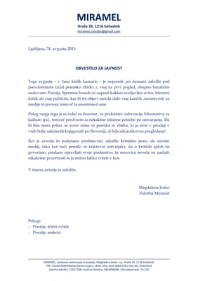 Obvestilo za javnost 31. 8. 2015